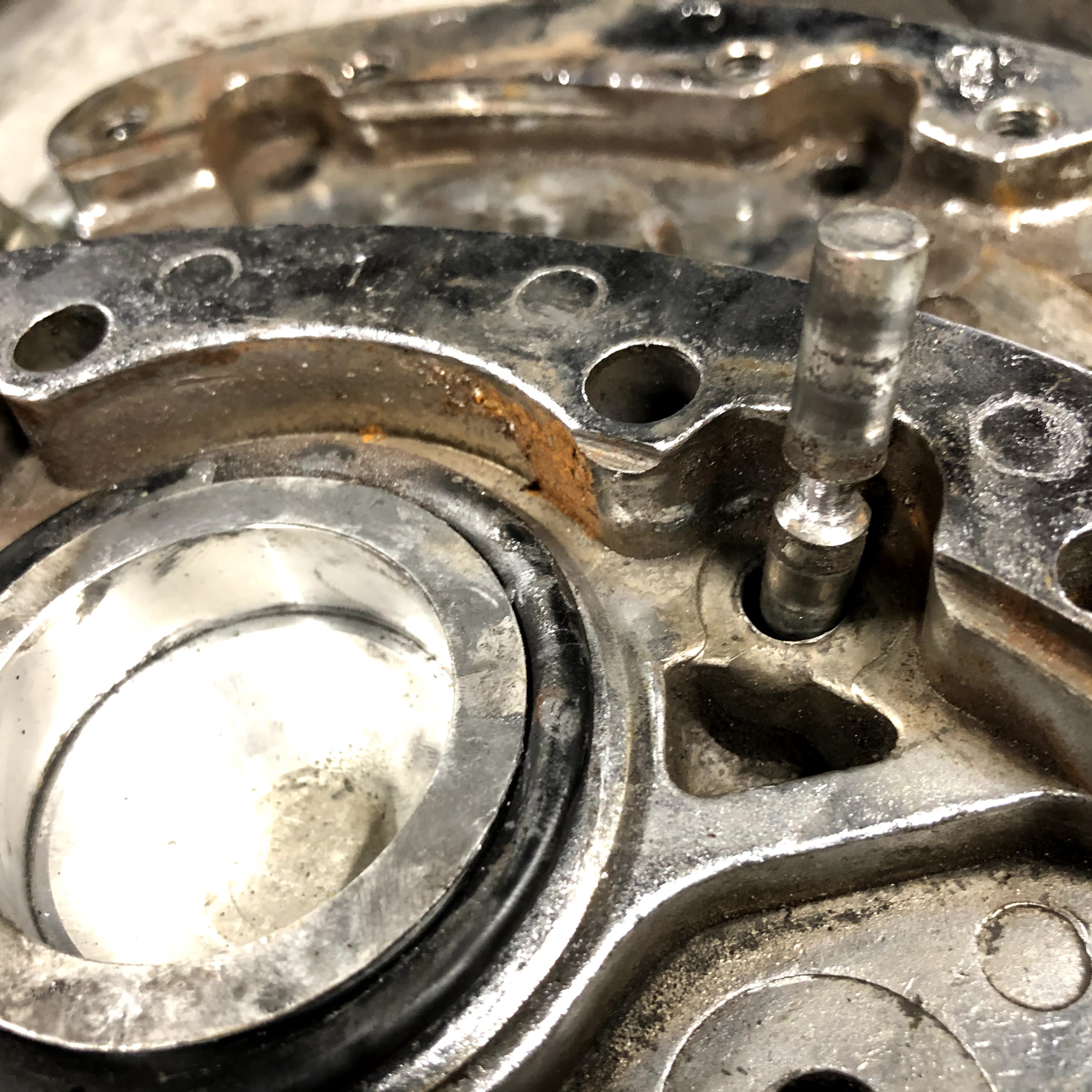車検でお預かりで当初サクッと点検整備済ませて納車の予定でしたが、リアブレーキキャリパー分解整備の際に不具合発覚しました。