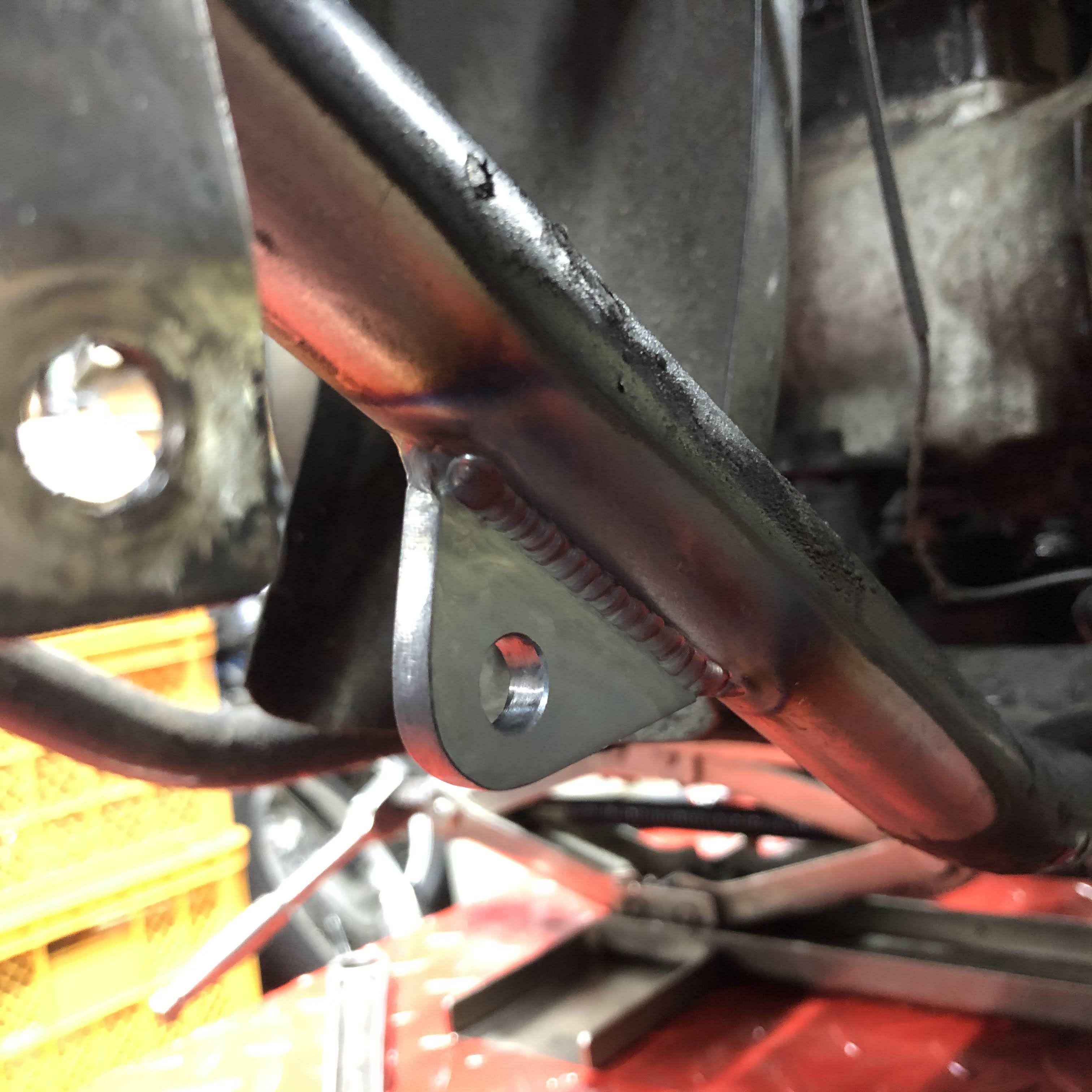 バナナキャリパーを吊り下げマウントされていたのですが、スライドピンがガタガタになっていて、そのガタをトルクロッドで引っ張って殺してある状態でしたので、