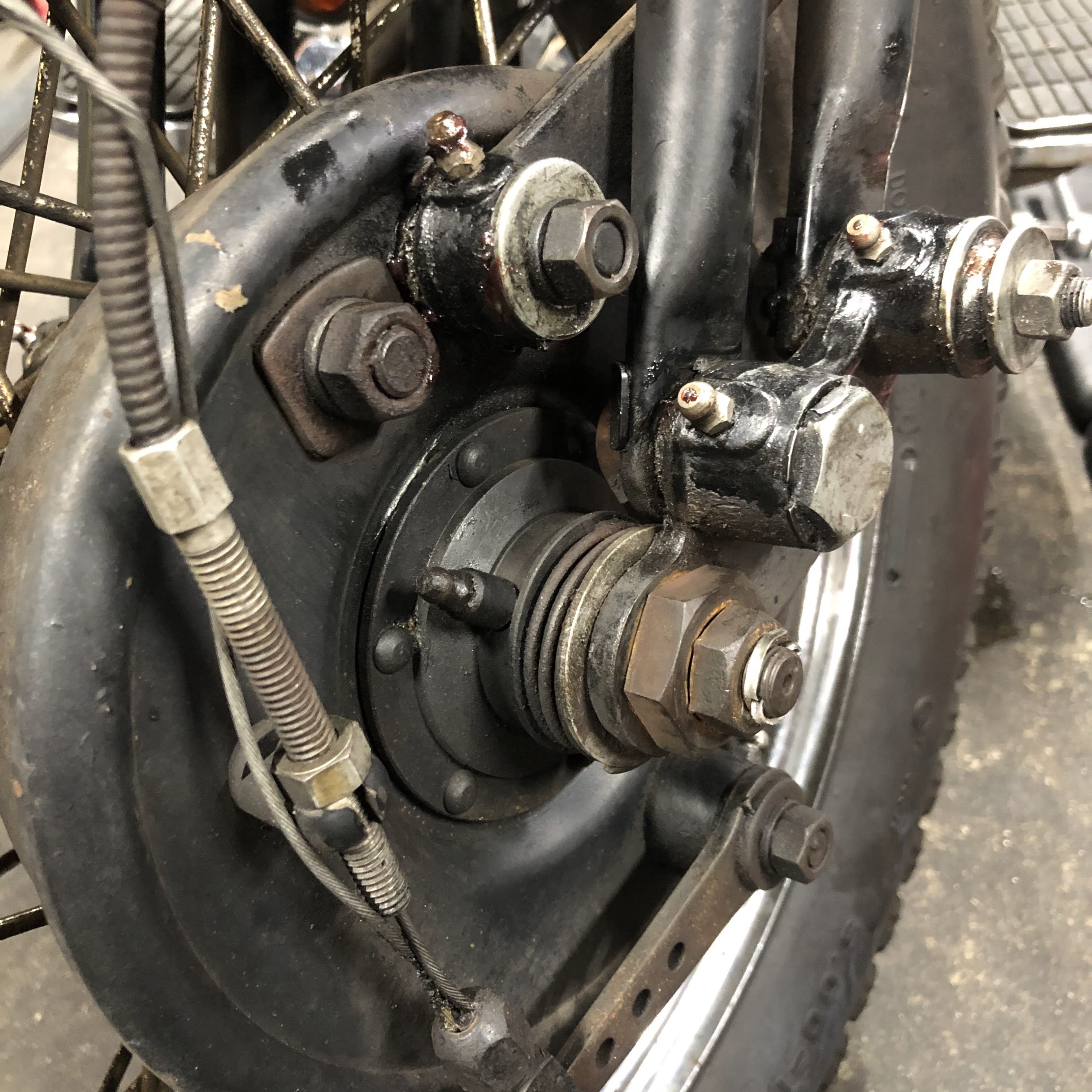 アクスルシャフトナット、スリーブナットも緩んでいたので、非常に危険な状態でした。