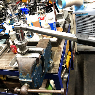 メインシャフトのボールベアリングナットは分解すると締め付けが甘い物が多いので、必ず規定トルク締めです。