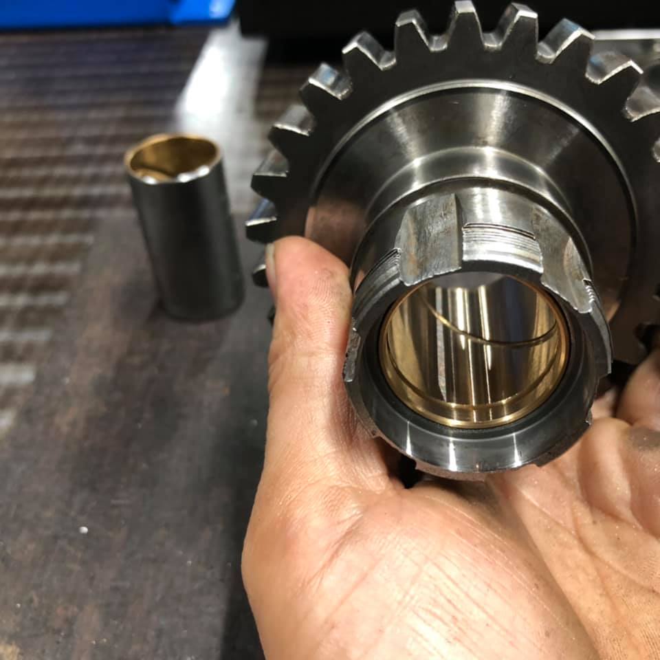 メインドライブギヤブッシュ入れ替え、ブッシュ内径仕上げです。