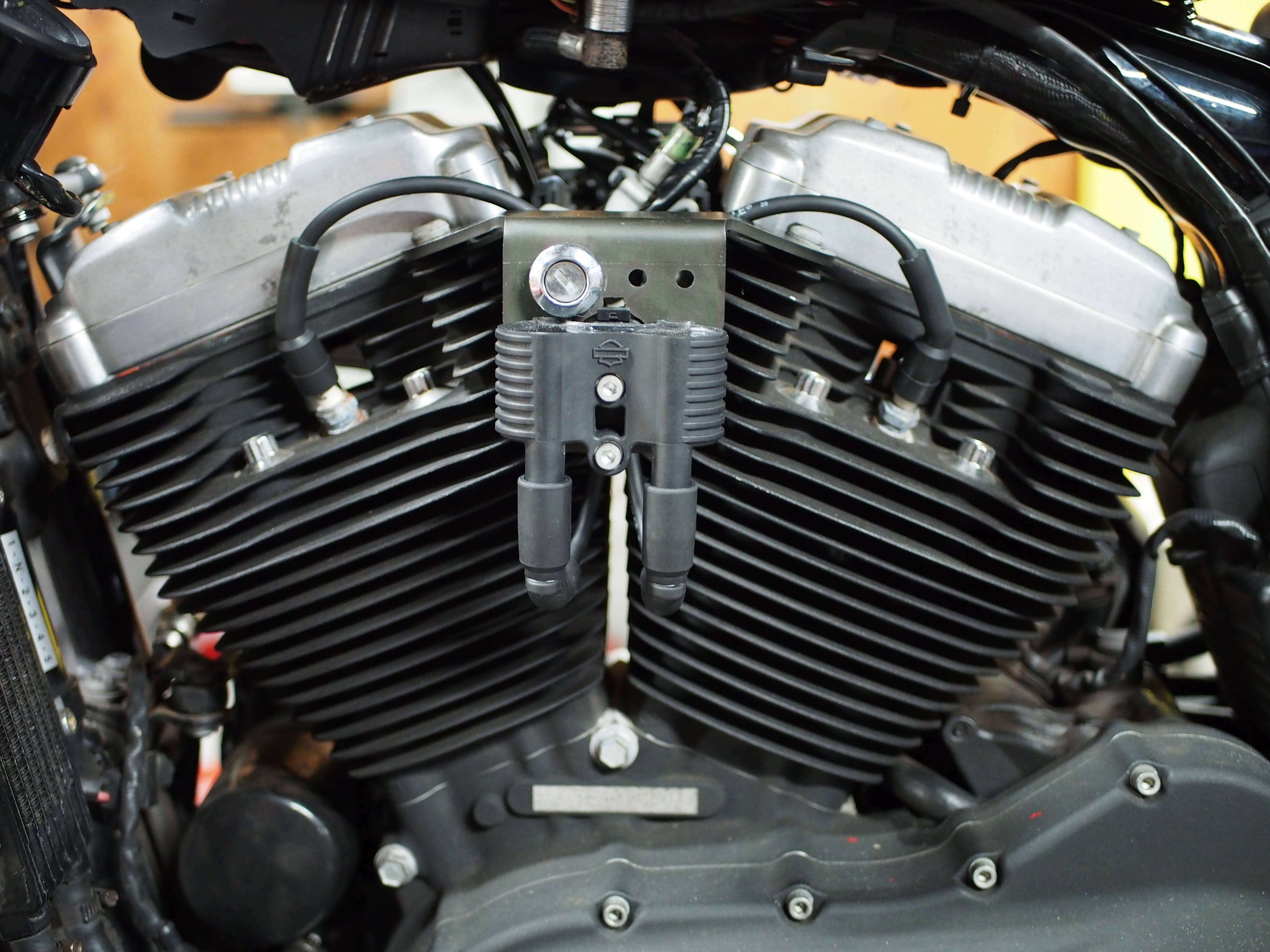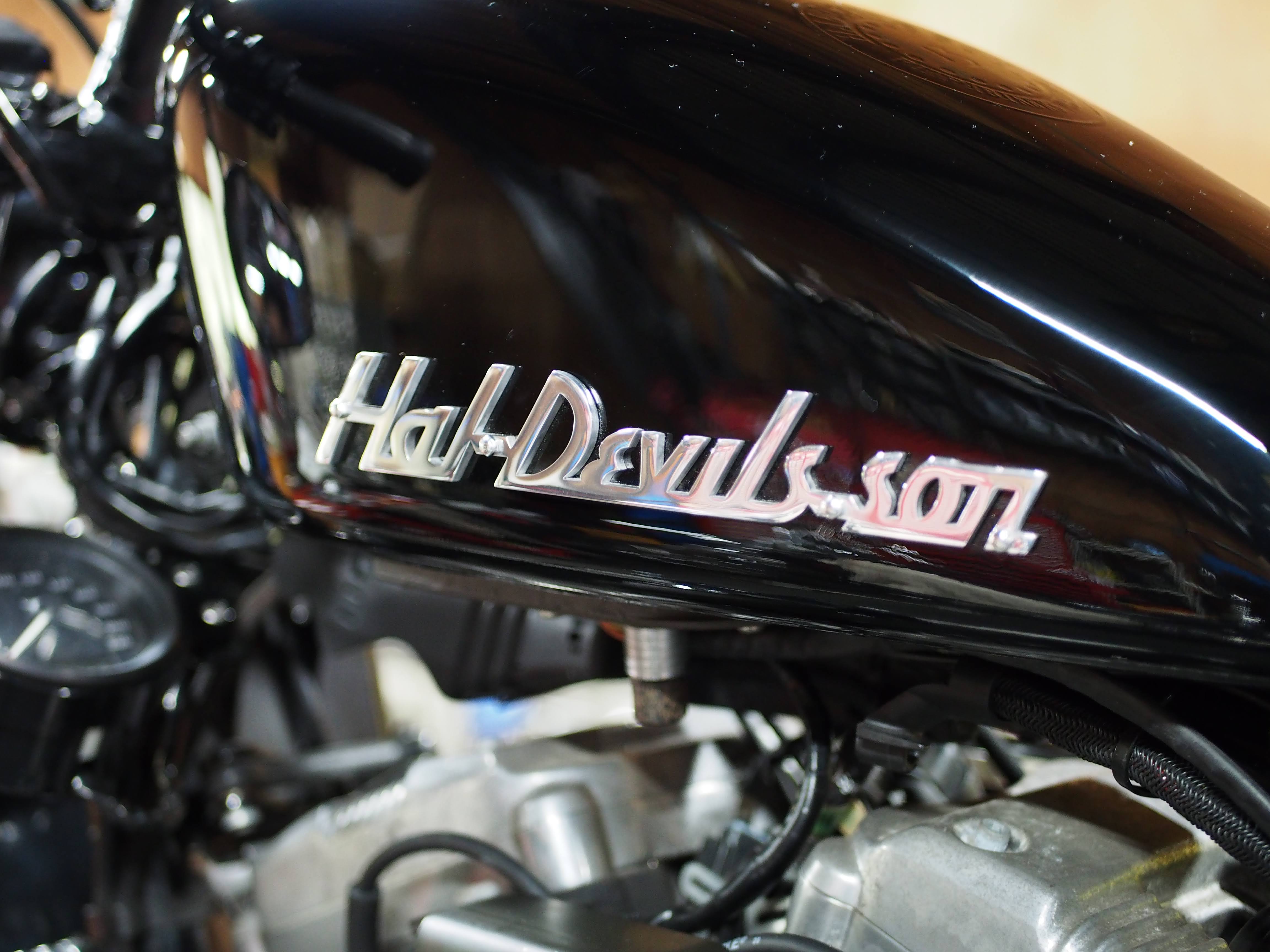 11XL1200X様 Hal-Devils-sonエンブレム取り付け加工、イグニッションスイッチ、イグニッションコイル移設、スピードメーター移設完了しました。