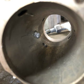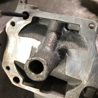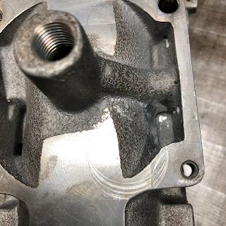 69FLH様 S&S Bキャブフロートチャンバーベント穴加工失敗の貫通穴の穴埋め整形加工しました。